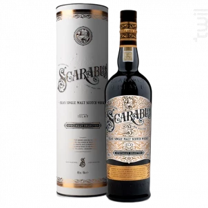 Scarabus islay single malt has a nose with smoky notes. The palate is warm, with notes of leather, cooked rhubarb, vanilla and smoky peat.